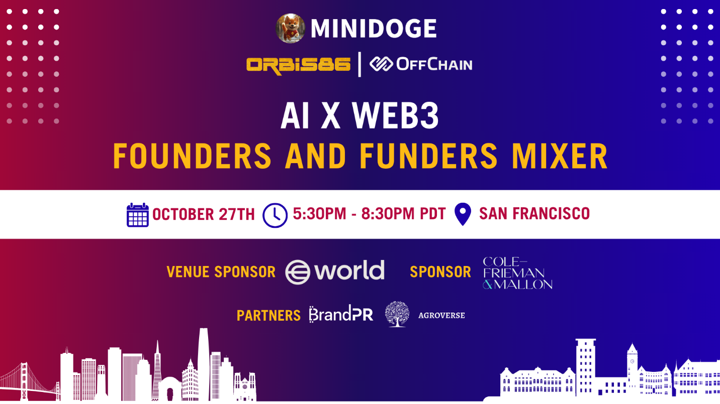 On Monday, October 27, Orbis86 will take center stage during TechCrunch Disrupt Week with the AI x Web3 Founders & Funders Mixer, title-sponsored by MiniDoge, at San Francisco. This exclusive gathering will unite pioneering entrepreneurs, leading investors, and tech visionaries, shaping the future of Artificial Intelligence and decentralized innovation.